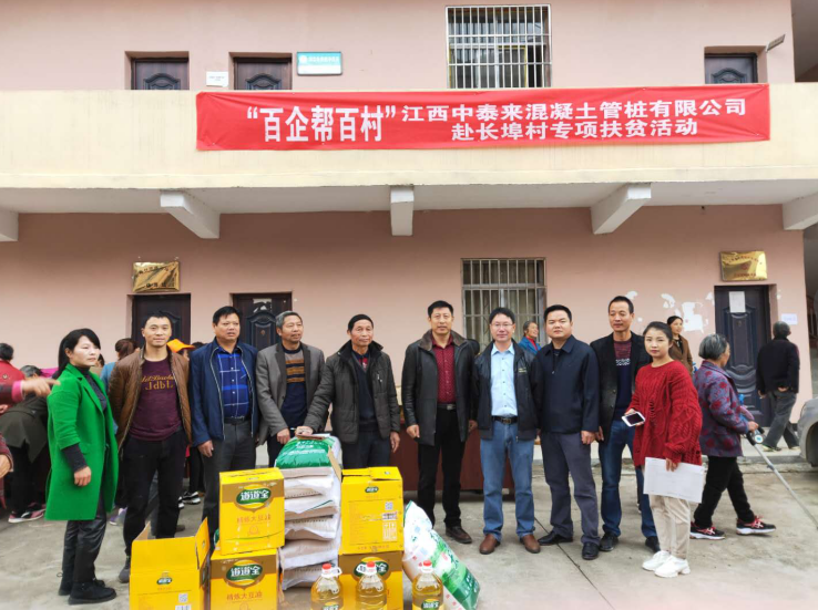 【百企幫百村】2018年11月18日,為積極響應縣委、縣政府關于“百企幫百村”的行動號召,以及縣工業園區管委會對“百企幫百村”行動的工作部署。我司江西中泰來混凝土管樁有限公司副總經理楊征、行政經理馮學軍等一行人來到長埠鎮長埠村開...