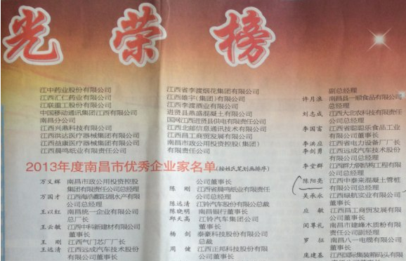 南昌市企業聯合會、南昌市企業家協會文件【2014】20號文件: 2013年度南昌市優秀企業、優秀企業家、優秀廠長(經理)評選活動于2014年上半年開始啟動,經各有關企業申報,各縣區、開發區(新區)、國資委企聯工作站、各企業團體、及有關委局(總...