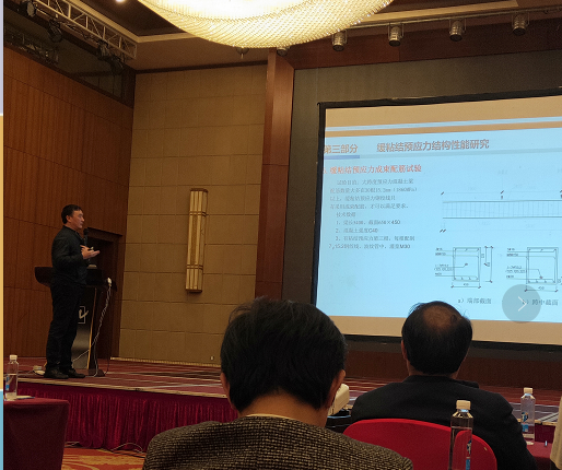 會上,由中國建筑科學(xué)研究研、中國建筑技術(shù)集團有限公司副總工程師李佩勛同志作了《緩粘結(jié)預(yù)應(yīng)力技術(shù)研究及發(fā)展》的報告;