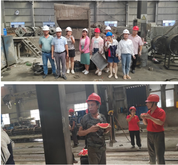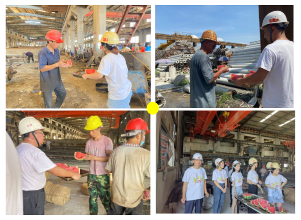 2022年7月,連續多日高溫天氣,最高溫度達37度,為體恤一線工人的辛苦,安義、彭澤兩公司后勤人員于7月13日自發前往生產車間,給工人送去清涼可口的西瓜。